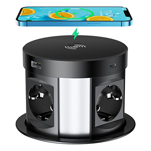 Prise Encastrable Plan de Travail 2 USB C, 4 Prises, 2 USB A...