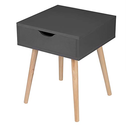 Eugad Table de Chevet Pieds en Bois 40x40x50cm Gris