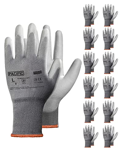 Pacifique Gants de Travail Gris PU XL 12 Paires