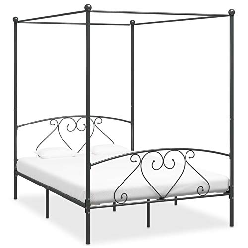 Cadre de lit baldaquin métal gris 140 x 200 cm