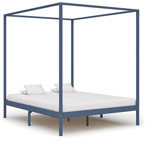 Baldaquin de lit gris bois massif 180 x 200 cm