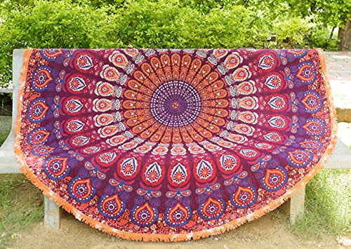 AVA Collections Grande tapisserie ronde en coton motif manda...