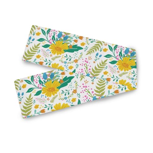 Chemin de table de cuisine scandinave jaune vif avec fleurs...