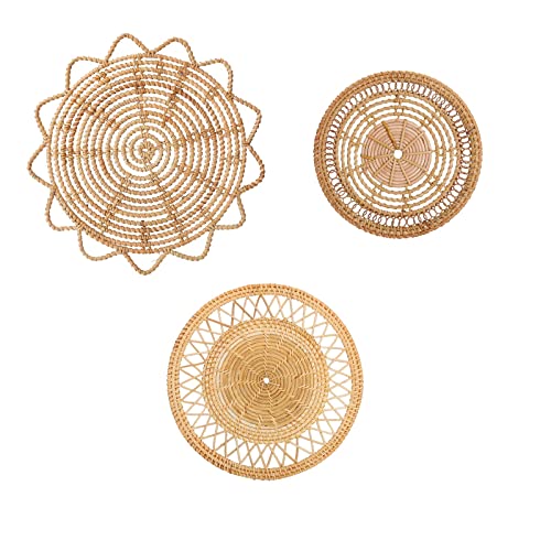 HL Lot de 3 paniers muraux en rotin naturel Kaki 25-30-33cm