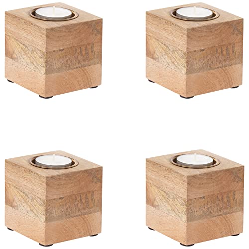 MARRAKESCH Lot de 4 photophores en bois massif 7,5 cm Marron...