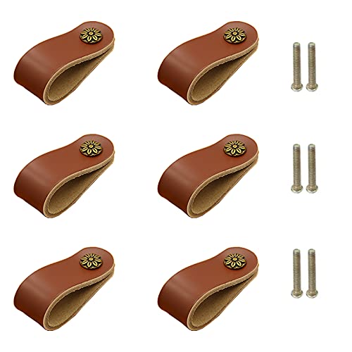 Poignées de Cuir 6 pcs Marron Véritable