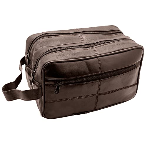 Trousse de toilette en cuir véritable pour homme de voyage -...
