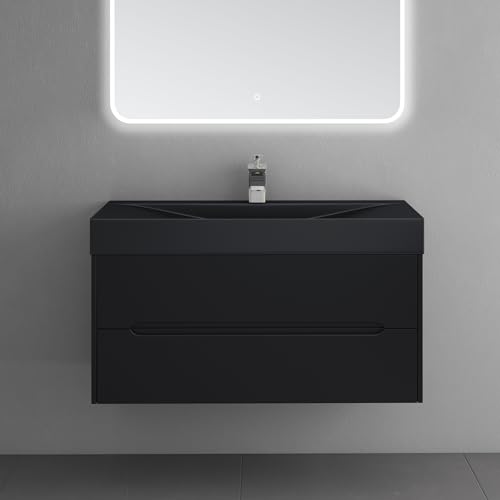 Sogood Meuble de Salle de Bain Noir Mat Noir 100x48x56cm Ens...