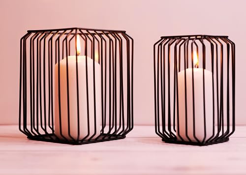 CeleBig® Lot de 2 bougeoirs | photophore en métal noir | réc...