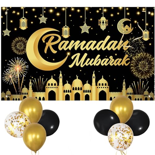 Banderole Ramadan Mubarak et 8PCS Ballons avec Ruban de Soie...