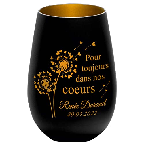 Photophore en Verre personnalisé - Nom et date funéraire - L...