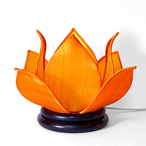 Art Lampe de Chevet Asiatique Fleur de Lotus en Soie Orange...