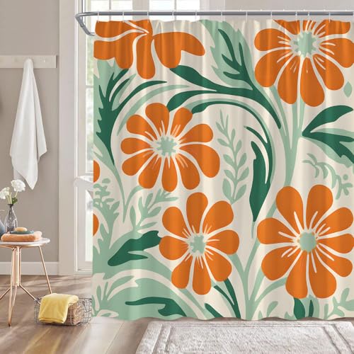 Orchidée de douche bohème-orange-vert-plantes-abstraites