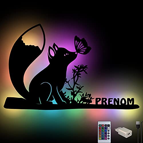 ❤ LAMPE LED MURALE PERSONNALISÉE : Veilleuse Renard avec pré...
