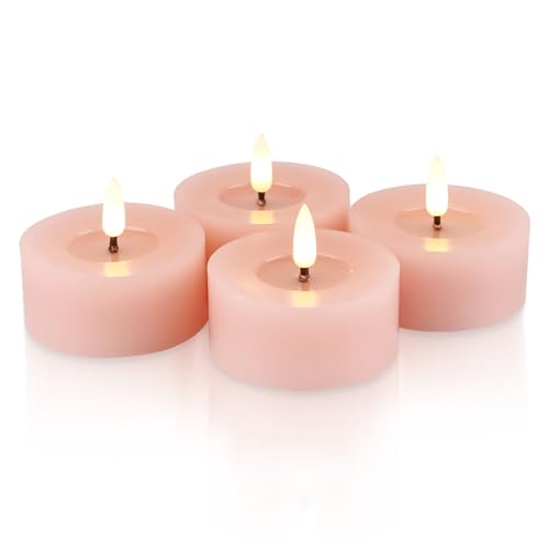 Rhytsing Lot de 4 bougies votives rose pâle sans flamme avec...
