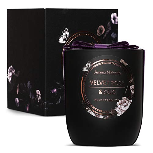 Aroma Bougie 30h, Cire de Soja, Parfum Rose Velours, Oud