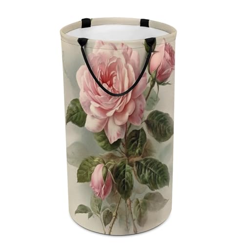Panier à linge vintage décoratif poignées salle de bain rose
