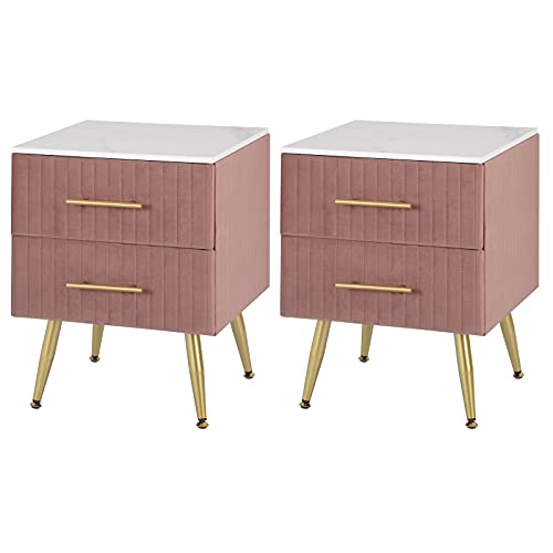 Tables de chevet 2x avec tiroirs en velours, meuble nuit ros...