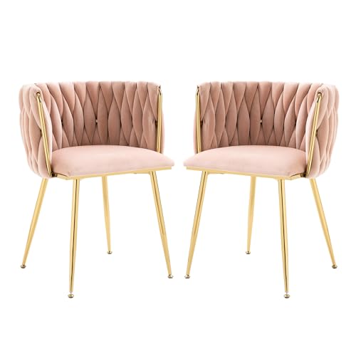 Lot de 2 chaises pivotantes en velours rose, siège rembourré...