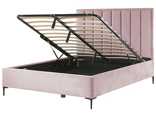 Lit tête de lit double rangement velours rose Sezanne 160 x...