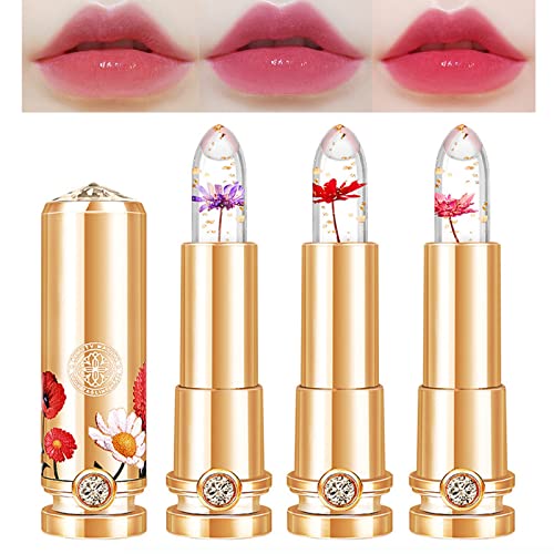 Flower Lipstick Set, Jelly Lip Gloss, Long Lasting Clear Hyd...