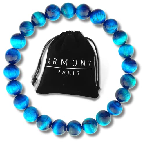 ?✔️ BRACELET PIERRE NATURELLE : OEIL DE TIGRE BLEU TURQUOISE...