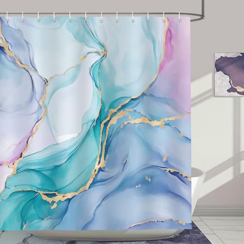Bonhause Rideau de Douche Marbre Rose Bleu Turquoise Anti Mo...