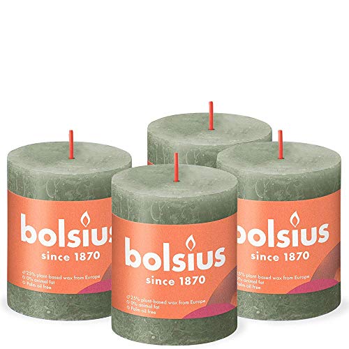 Bolsius Rustik Lot de 9 bougies vert olive, 13h sans parfum...
