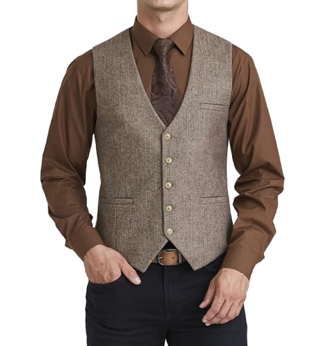 HISDERN Hommes Formelle Tweed Gilets Mariage Laine Gilet Che...