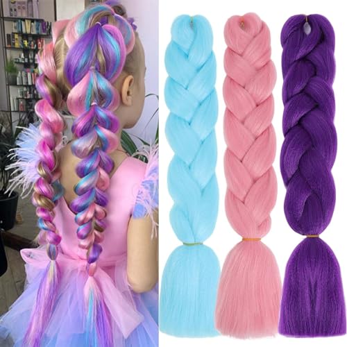 Lot de 3 paquets d''extensions de cheveux colorés à tresser...