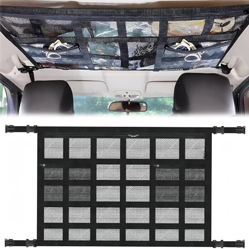 Filet de Rangement pour Voiture Toit, 90 cm x 65cm Plafond d...