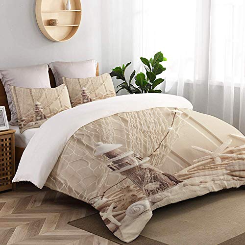 TESCI Parure de Lit, Housse Couette, Filet Pêche Marine, Éto...