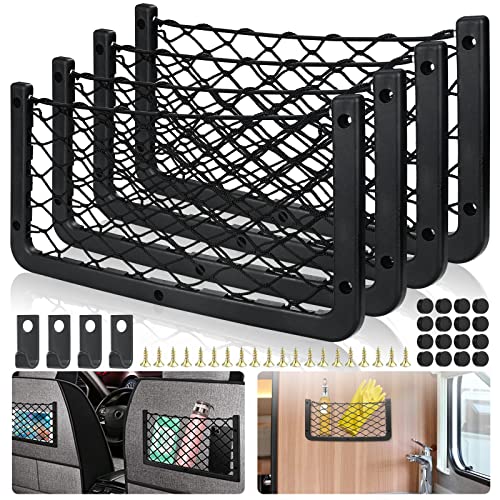 Lot de 4 Filet Rangement pour Voiture, , Filet Coffre avec V...