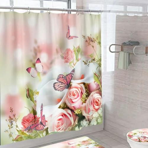 Lot de rideaux de salle de bain 3D avec tapis et crochets