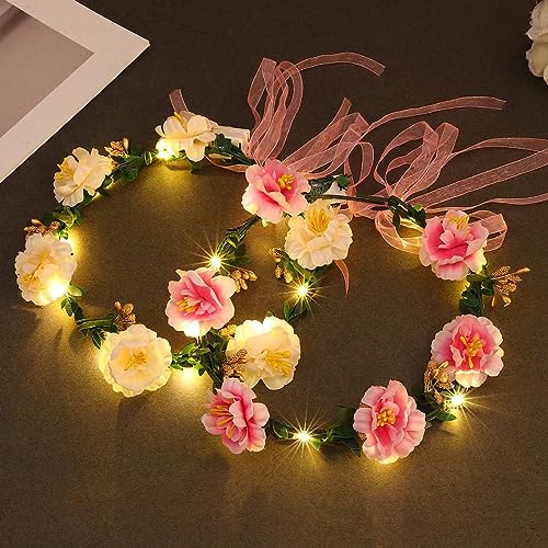 Zoestar Lot de 2 Bandeaux lumineux à couronne de fleurs Band...