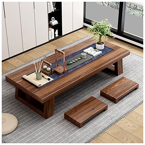 Table basse japonaise à 4 tabourets bois multifonctionnelle