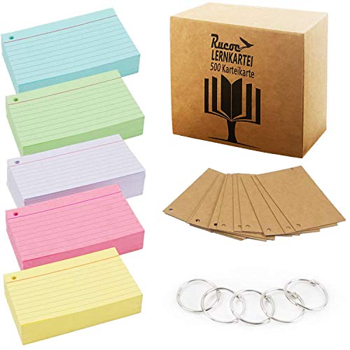 Lot de 500 cartes d''apprentissage, à carreaux, 9 x 5,5 cm,...