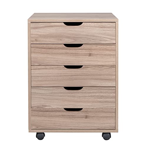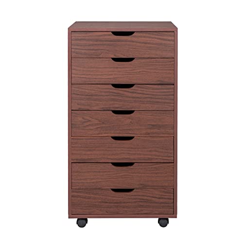Bois Classeur MDF Noyer Gris 7 tiroirs