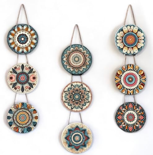 Generic Lot de 9 décorations murales bohèmes rondes en bois...