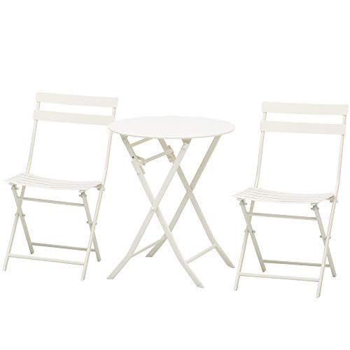 Salon de Jardin Bistro Pliable Ø 60 cm métal thermolaqué Bla...