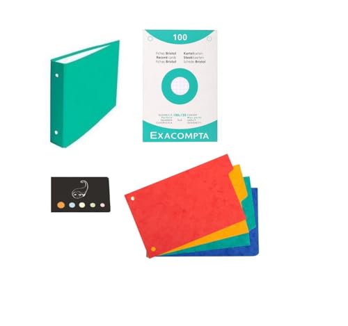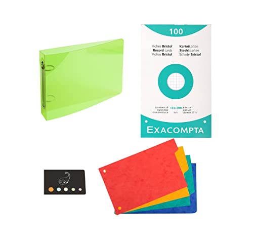 Lot 1 Classeur + 100 Fiches Bristol Quadrillées Perforées +...