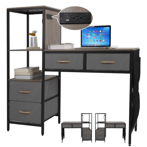 Bureau d'ordinateur 4 tiroirs, 47 po étagères, sacs à docume...