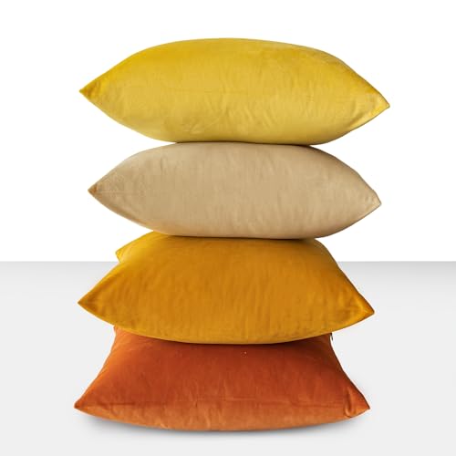 Moussayt Housse Coussin 40x40cm Velours Orange Jaune Moutard...