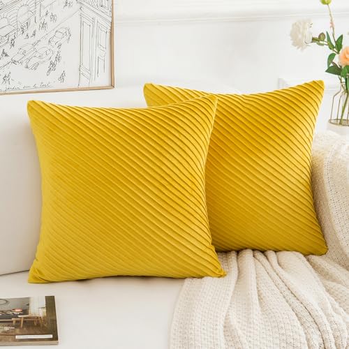 Topfinel Coussin Jaune Moutarde Croisé Velours Super Doux