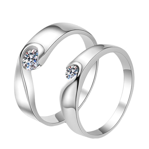 Alliance Femme Argent 925, Bague Coeur 9x9MM Zircone