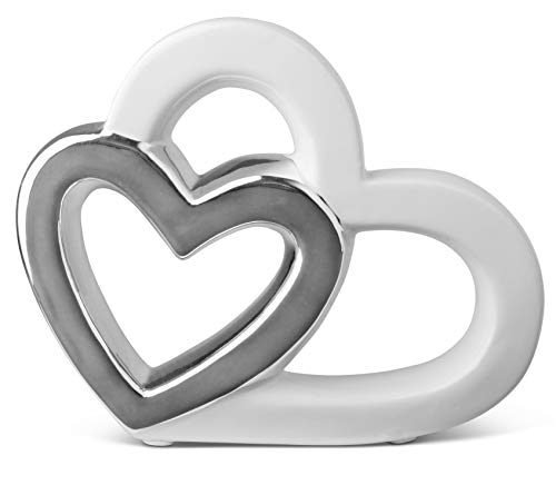 Coeur décoratif en céramique moderne blanc et argent, forme...