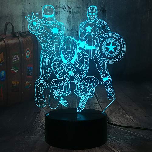 Avengers Spiderman Iron Man Cap America Veilleuse LED 3D