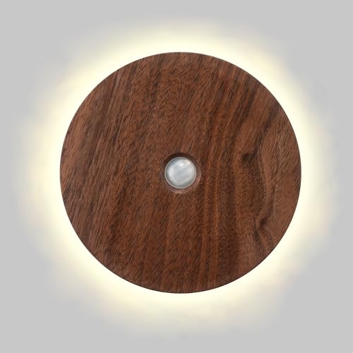 Murale ronde en bois LED détecteur mouvement 3000K, lampes m...