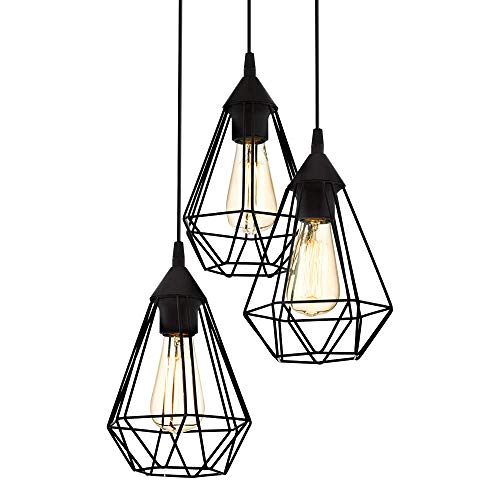 Luminaire Suspension EGLO Tarbes 3 lampes, abat-jour vintage...