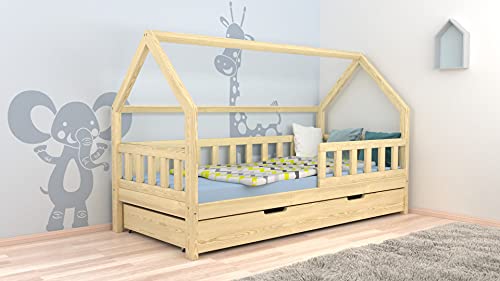 Lit d''enfant Maison Bois de Pin Lit Cabane avec Grille de P...